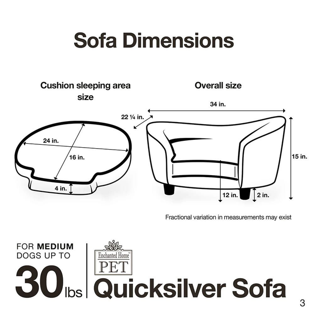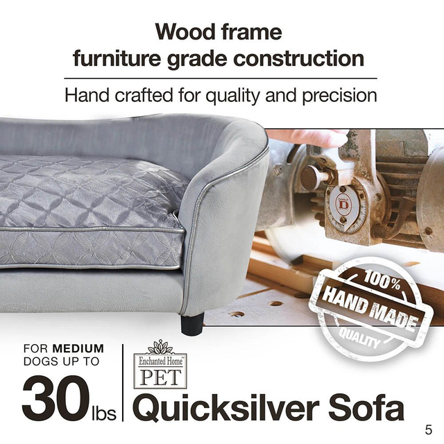Das Hundebett Enchanted Quicksilver ist ein komfortables Sofa für Hunde bis zu einem Körpergewicht von 13 kg. Mit Rücken- und Armlehnen, bequemen weichen Kissen und einer ergonomisch angepassten Form ausgestattet sorgt es für einen optimalen Schlaf- und Liegeplatz.