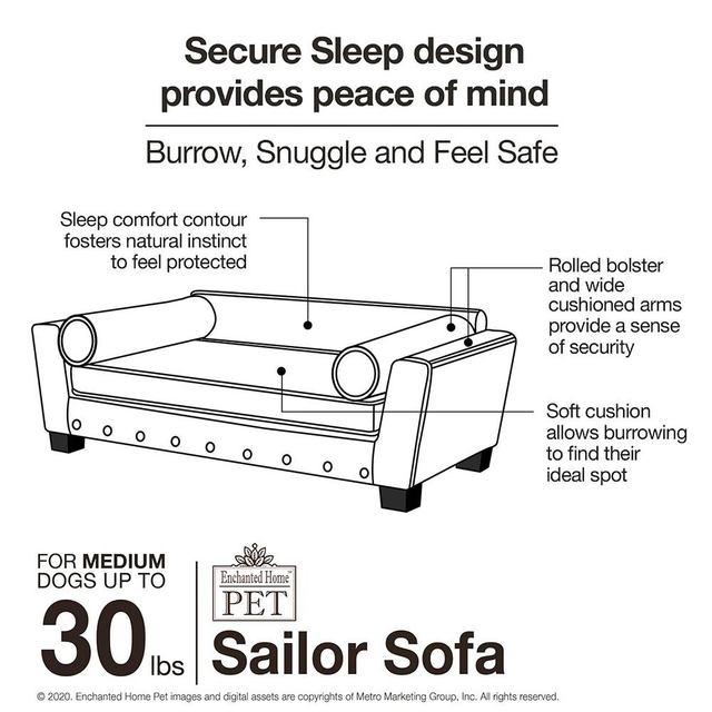 Ein komfortables und geschmackvolles Sofa, das den Ansprüchen ihres Hundes gerecht wird. Dank des ansprechenden Designs und der hohen Qualität der verwendeten Materialien ergänzt und bereichert das Möbel jede Wohnung.