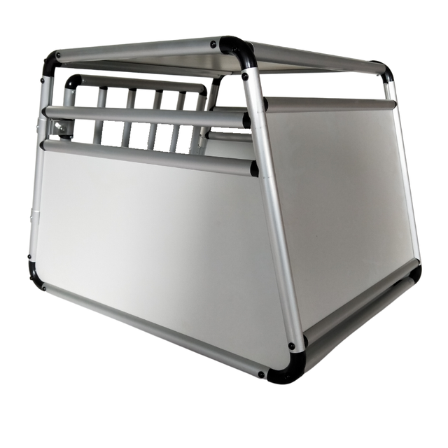 Hundetransportbox, Aluminium, MDF, Leichtgrau, Runde Rohre, 69 x 54 x 50 cm