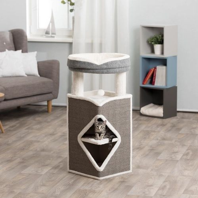 Durch den rautenförmigen Einstieg kann sich ihre Katze aussuchen, auf welcher Katzenturm-Ebene sie sich ausruhen möchte.